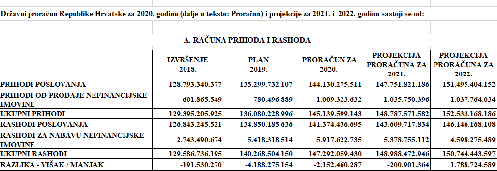 Pregled podataka Vlade RH o Proračunu;