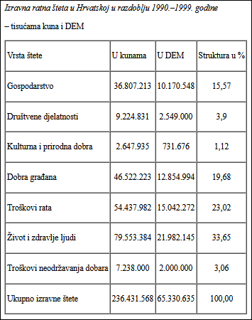 Republika Hrvatska je u Domovinskom ratu 1991.–1995. godine imala velike ljudske žrtve, stradanja stanovništva i ogromne materijalne štete, što je bitno obilježilo usporilo njen gospodarski i socijalni razvoj. Prema podacima Ministarstva rada i socjalne skrbi štete iznose;https://hrcak.srce.hr/file/47404