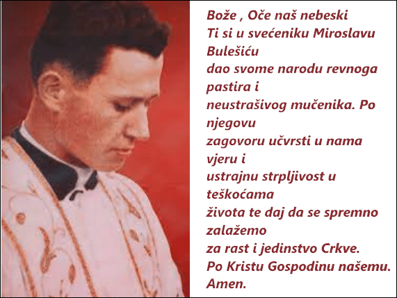 Bl. Miroslav Bulešić istarski sin, svećenik i blaženik, simbolizira u svojem liku i djelovanju hrvatski narod u Istri i Katoličku crkvu kao dva tijela jedne duše. Miroslav Bulešić potekao je iz naroda koji je sastavni dio Katoličke crkve u Istri, Crkve koja je ponikla iz naroda i u kojoj se kao svećenik posvetio narodu. Svećenici i biskupi, časne sestre i redovnici bili su uz narod i s narodom u dobru i zlu, dijeleći zajedničku sudbinu i ublažavajući patnju i nesreće kako i koliko su mogli. Jedinstvo hrvatskih vjernika i Katoličke crkve i upućenost svećenstva i naroda jednih na druge, što je stoljećima bilo izgrađivano kao spontani odnos, predstavljalo je neku vrstu prešutnog, neraskidivog saveza i uzajamnog povjerenja koje je nadilazilo sve ideologije i sve političke sustave i taj savez ostao je čvrst i postojan uvijek, čak i u vremenima najvećih ratnih stradanja i krvoprolića.