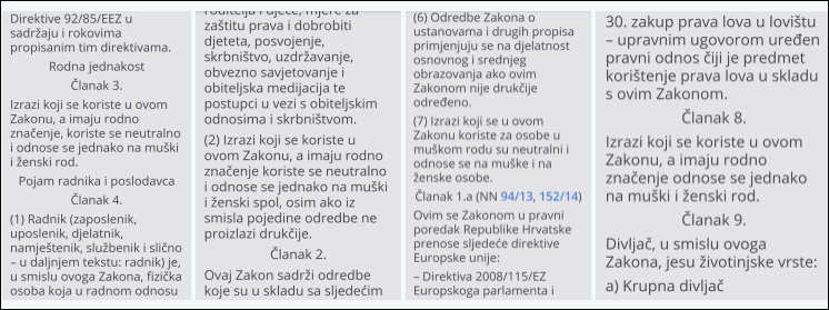 Zakon o radu, Obiteljski zakon, Zakon o obrazovanju, Zakon o lovu