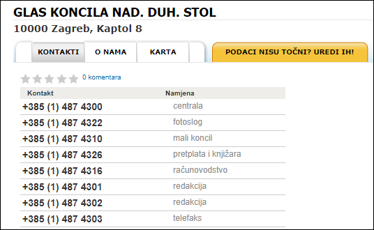 Broj +385 1 4874326 je broj Glasa Koncila, pretplata i knjižara