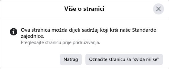 Što radi FB, kada upozorava da se ne klikne “sviđa mi se” jer krši njihove standarde?
