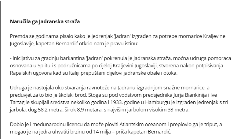 Prenosim tekstove o jedrenjaku školskom brodu Jadran kojeg sam često viđala i u pulskoj luci u vrijeme bivše Jugoslavije! Bio je predmet znatiželje i divljenja!