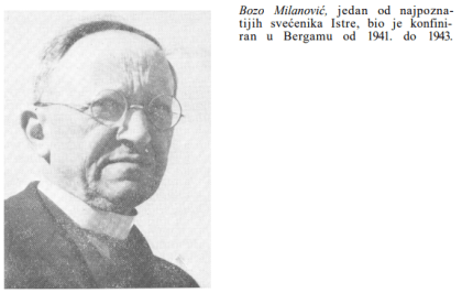 - Posebno su se okomili na jednog od poznatijih hrvatskih svećenika Božu Milanovića koji je bio župnik u selu Kringi. I njega su 1921. godine napali talijanski fašisti iz Pazina i poslije nekoliko udaraca po glavi razmilili se po župnom stanu i pobacali kroz prozor knjige. Nakon toga odveli su ga u Pulu, najprije u