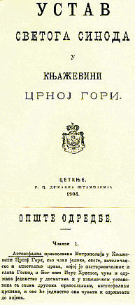 “Avtokefalna pravoslavna Mitropolija u Knjaževini Crnoj Gori, kao član jedne svete katoličanske i apostolske crkve, kojoj je pastirenačelnik i glava Gospod i Bog naš Isus Hristos, čuva i održava jedinstvo u dogmatima i kanoničkim ustanovama sa svima drugima pravoslavnima avtokefalnim crkvama, i ovo će jedinstvo ona čuvati i održavati dovijeka”.