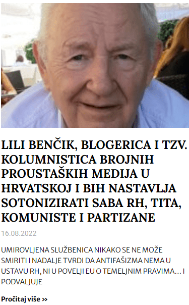 Podugačak je niz hrvatskih novinara i Portala koji su na Titovu putu i sve koji ga ne slijede proglašavaju ustašama ili proustašama, koji žive u Hrvatskoj i na teret nas Hrvata, neprestano nameću Titov put, slijepi put, koji ne vodi nikamo. Moraju se svako jutro buditi u njima mrskoj Hrvatskoj i to im je noćna mora, pa neka pate, patiti će i dalje, jer nas Hrvate na njega vratiti neće!
