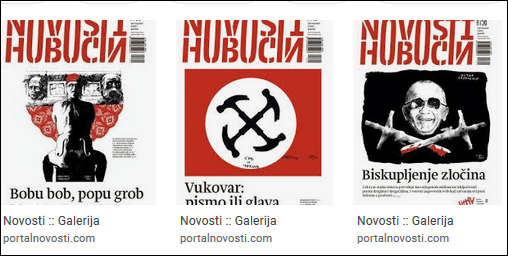 Pupovac se u Biltenu žali da „Pupovac u zatvor uz ilustracije vješala“ ili Srbe na vrbe”, prikazi linčovanja obitelji uz natpis “Serbian family tree”. A što Novosti rade? Objese predsjednika Tuđmana uz popratni tekst Viktora Ivančića „Normalni građani znaju da je samo obješeni Prvi predsjednik onaj koji nam danas treba.“ I to je sloboda govora! Znači za Hrvate ne vrijedi sloboda govora, a za Srbe vrijedi?