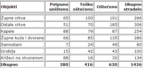 Uništeni i oštećeni objekti Katoličke crkve dokaz su etničkog čišćenja, jer treba dokazati da na tom prostoru nisu živjeli Hrvati