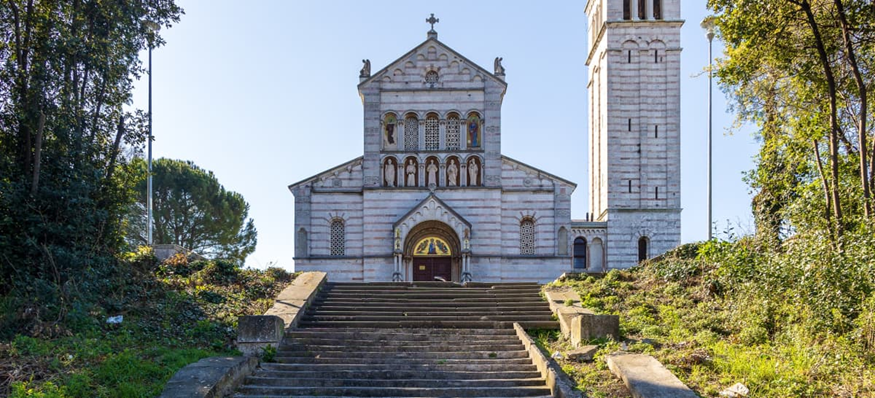 Crkva se počela graditi 29. lipnja 1891. kada je temeljni kamen položio sam austro-ugarski car Franjo Josip. Gradnju crkve su vodili trojica arhitekata: Victor Lunz Friedrich von Schmidt i Natale Tommasi. Crkva je građena od naizmjeničnih redova bijelog istarskog kamena s Brijuna i rumenog mramora izvađenog u kamenolomima Oprtlja i Brtonigle. Zvonik crkve je visok 28 metara, a na njemu se nalazi brončani kip anđela raširenih krila. Crkva je duga 30 metara a široka 20.. Građena je više godina, a otvorena je 2. prosinca 1898., na 50. obljetnicu vladanje cara Franje Josipa. Car je došao u raskošnoj kočiji do uzvisine na kojoj se nalazi Gospa od Mora. Popeo se preko 75 stepenica impozantnog prilaza na plato ispred pročelja trobrodne zgrade Sterneck.