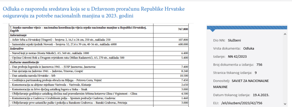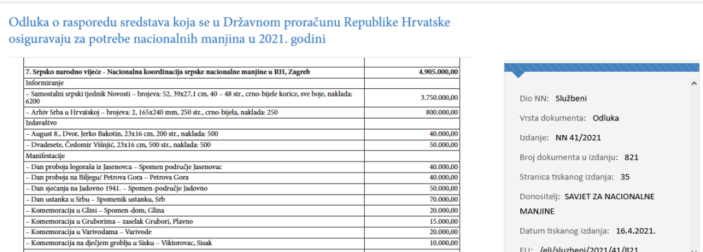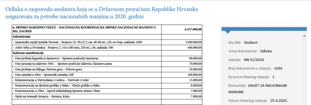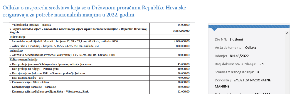 Znači direktno sudjeluje u raspodjeli sredstava i sam sebi odnosno SNV-u dodjeljuje sredstva iz Proračuna RH.