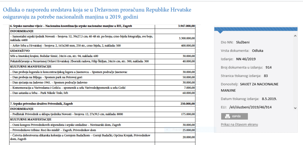 Drugo donosi odluku o raspodjeli sredstava iz Proračuna RH medijima kojima je privatno izdavač.