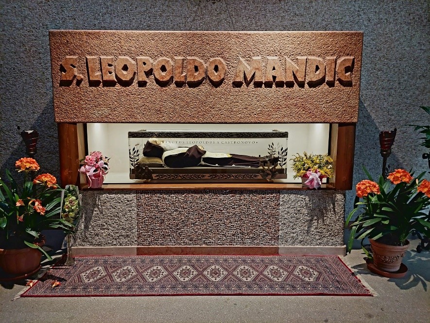 Posjetili smo svetište Sv. Leopolda Mandića. Franjevac kapucin (OFMC) – svećenik, mali rastom, a veliki duhom. Kad je iscrpljen ispovjedničkom službom i bolešću 30. srpnja 1942. preminuo u Padovi, vjerni ga je narod sa svoje strane odmah proglasio svecem. Njegovo se štovanje, upravo munjevitom brzinom proširilo po svim zemljama i kontinentima. U našoj domovini (Hrvatskoj) njegovo štovanje počeo je najprije širiti kardinal Alojzije Stepinac.