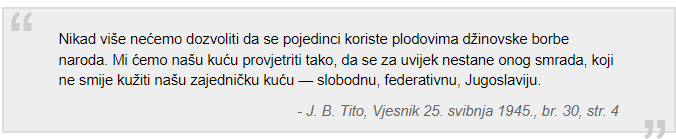 Nije donio slobodu nego je samo zamijenio fašizam i istim metodama terora, progona i zabrana ukinuo slobodu kretanja, slobodu izbora i slobodu mišljenja.
